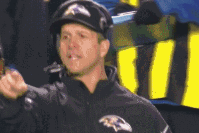 The Ravens gave up a pivotal fourth-and-1 when they had 12 guys on the field against an opposing field goal attempt. This is John Harbaugh realizing it: